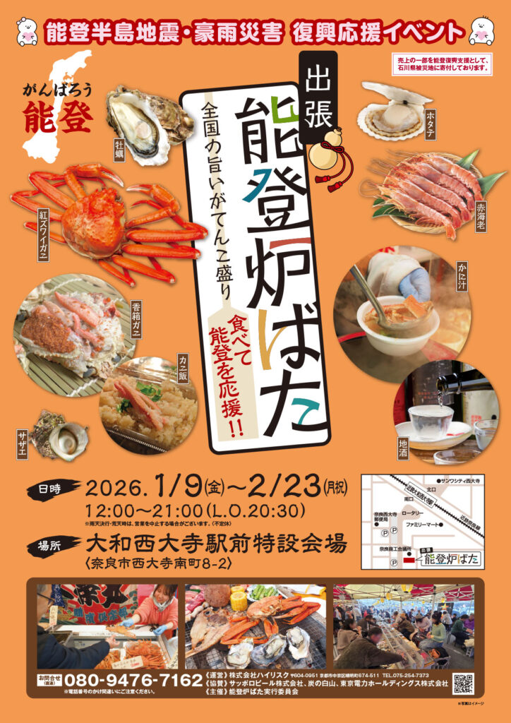 能登応援「出張炉ばた」in 大和西大寺駅前 2026年1月9日~2月23日開催