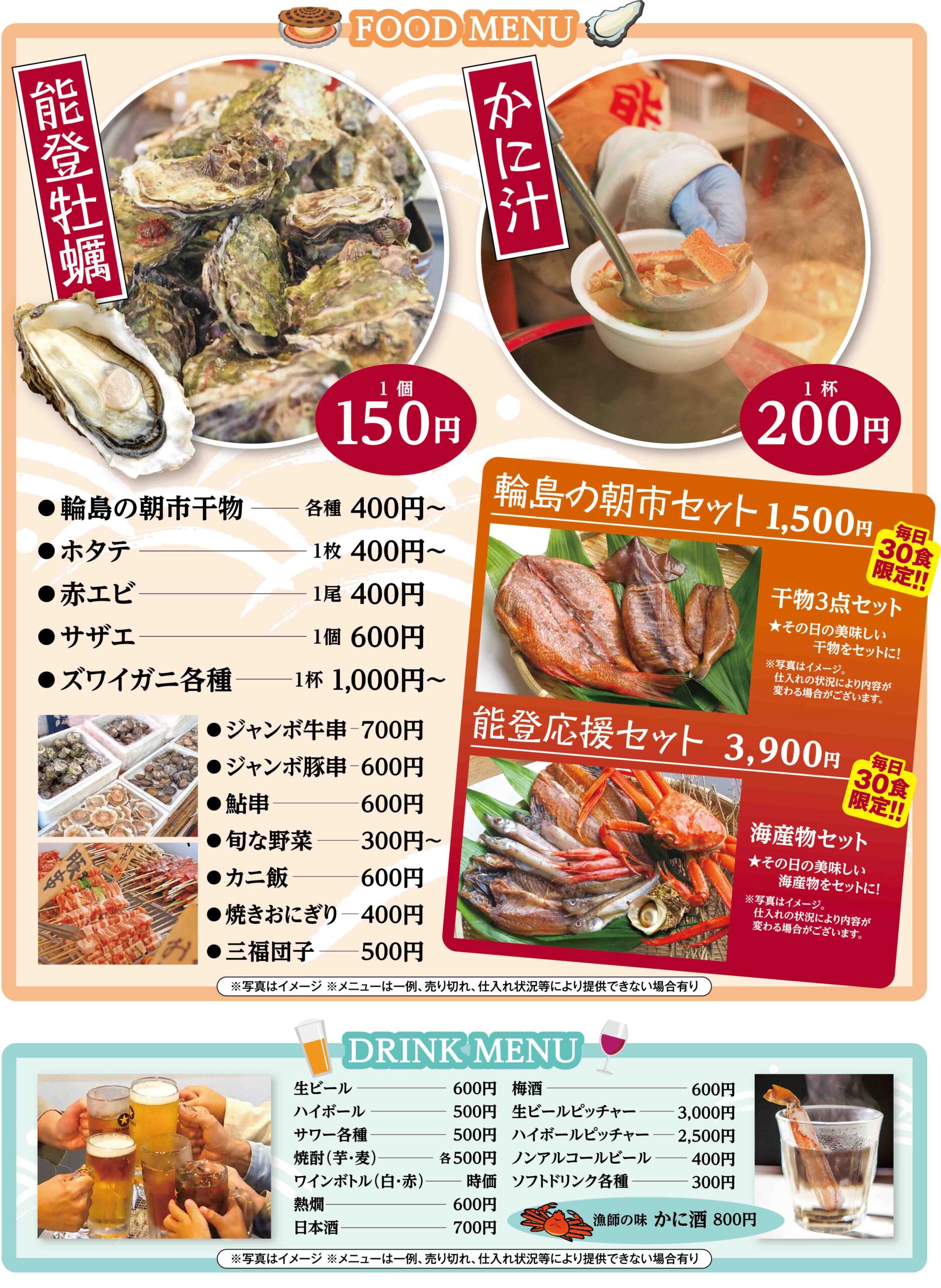 能登産の海産物を中心に旨いをてんこ盛りにしました。